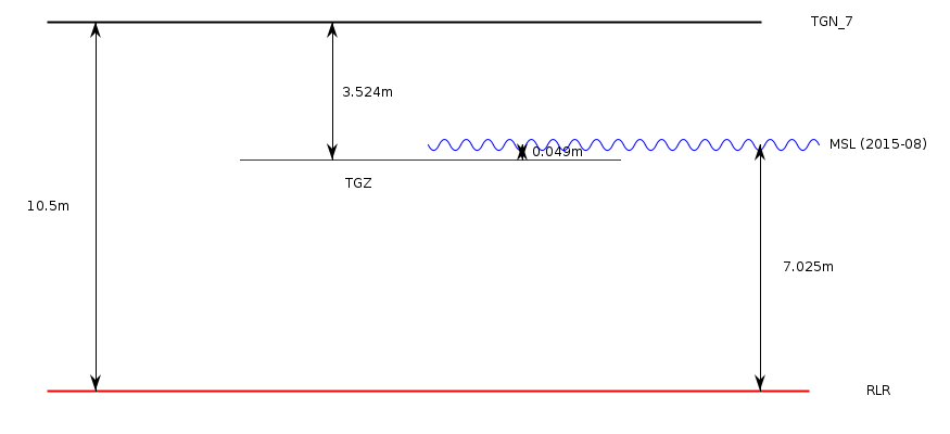 Add 6.976m to all data values to refer to RLRRLR is 10.500m below primary benchmark TGN_7