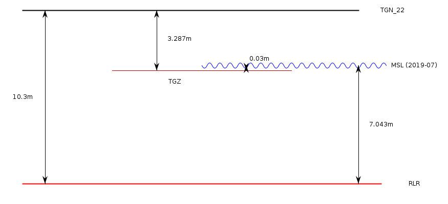 Add 7.013m to all data values to refer to RLRRLR is 10.300m below primary benchmark TGN_22