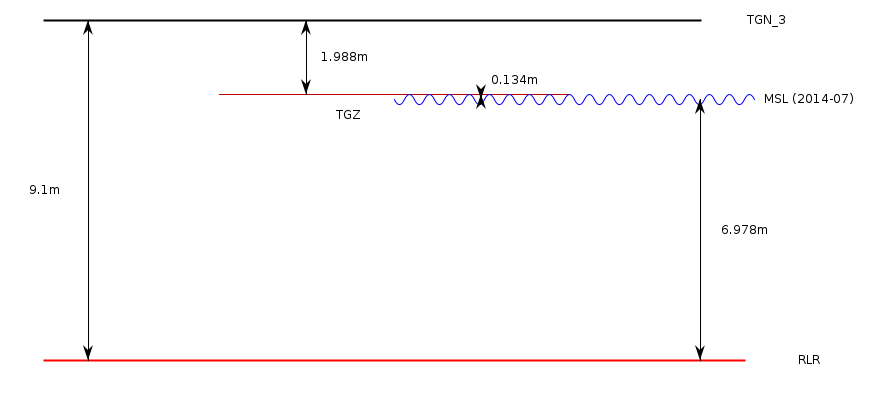 Add 7.112m to all data values to refer to RLRRLR is 9.100m below primary benchmark TGN_3