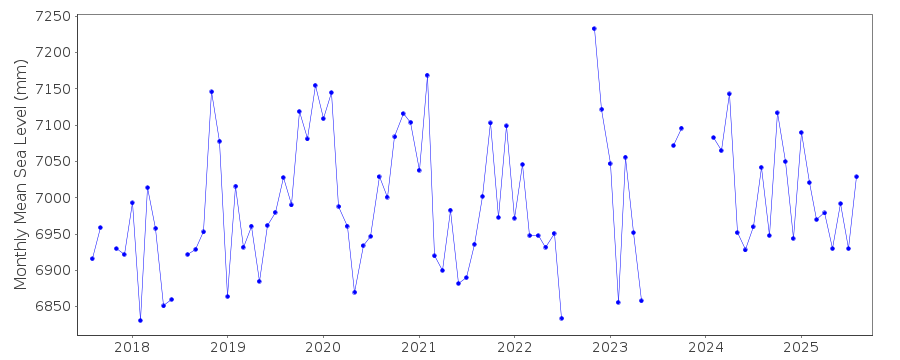 Please note: In many cases, the station position in our database is accurate to only one minute. Thus, the tide gauge may not appear to be on the coast.