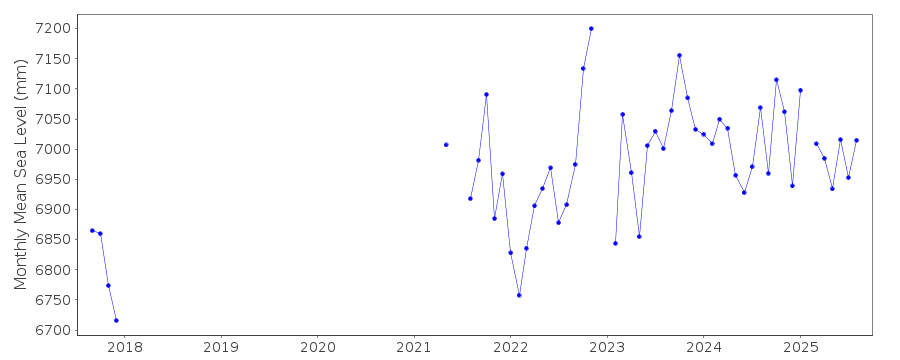 Please note: In many cases, the station position in our database is accurate to only one minute. Thus, the tide gauge may not appear to be on the coast.