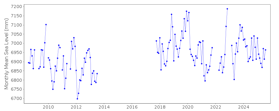 Please note: In many cases, the station position in our database is accurate to only one minute. Thus, the tide gauge may not appear to be on the coast.