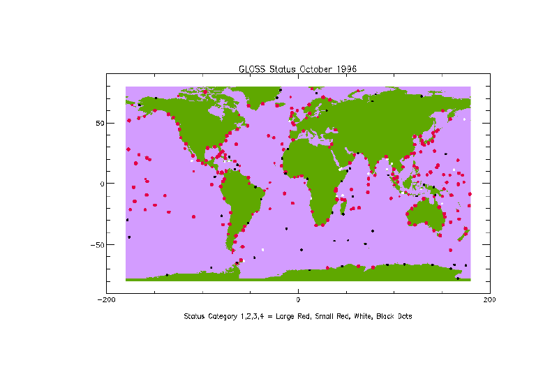 Clicking here. A full breakdown of the status of each of the 308 GLOSS gauges is available from the PSMSL or by inspecting the 1996 GLOSS status map.